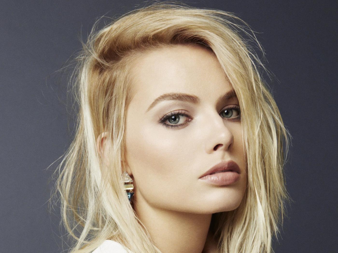 Wallpaper Beautiful blonde actress Margo Robbie on a gray background