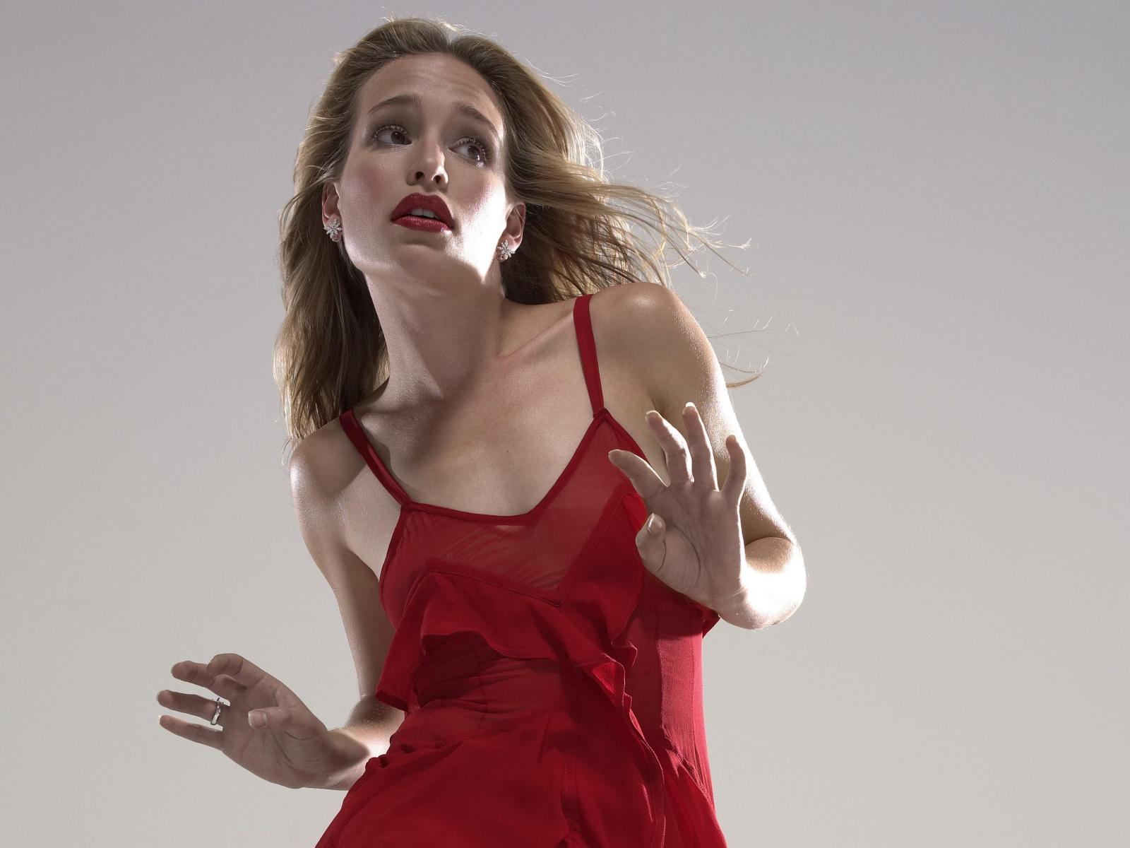 Wallpaper Actress Piper Perabo in a red dress on a gray background