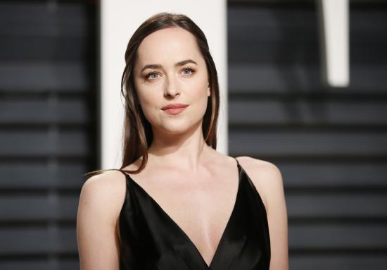 Wallpaper Beautiful blue-eyed girl actress Dakota Johnson in a black dress
