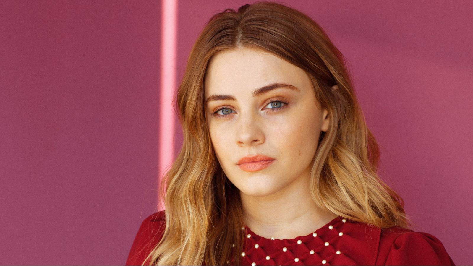 Wallpaper Young actress Josephine Langford on a pink background