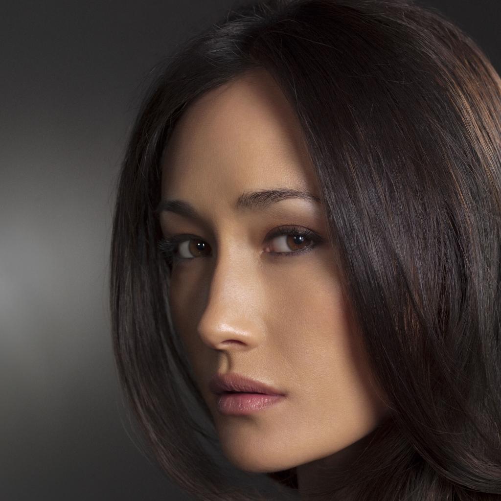 Wallpaper Beautiful brunette actress Maggie Q on a gray background