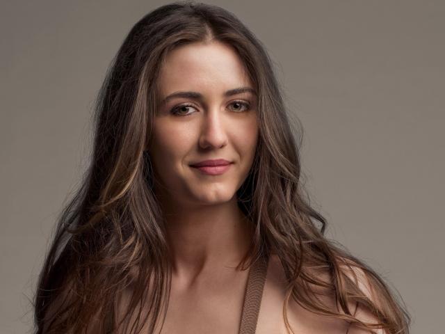 Wallpaper Young long-haired girl, actress Madeline Winter on a gray background