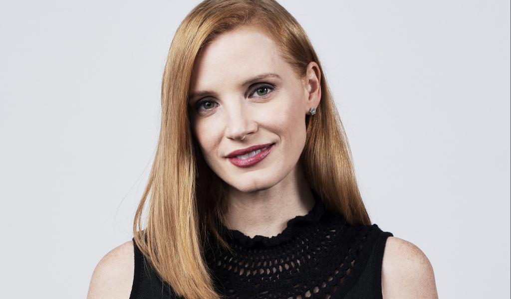Wallpaper Beautiful red-haired actress Jessica Chastain on a gray background