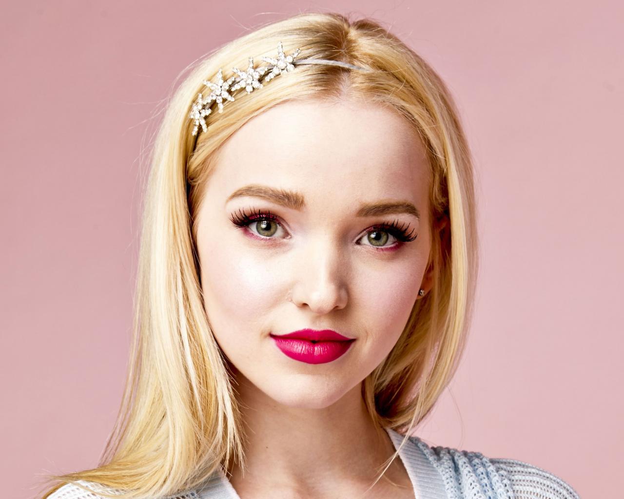 Wallpaper Cute girl actress Dove Caron on a pink background