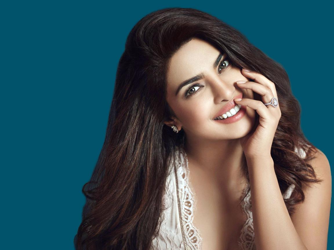 Wallpaper Smiling Indian actress Priyanka Chopra on a blue background