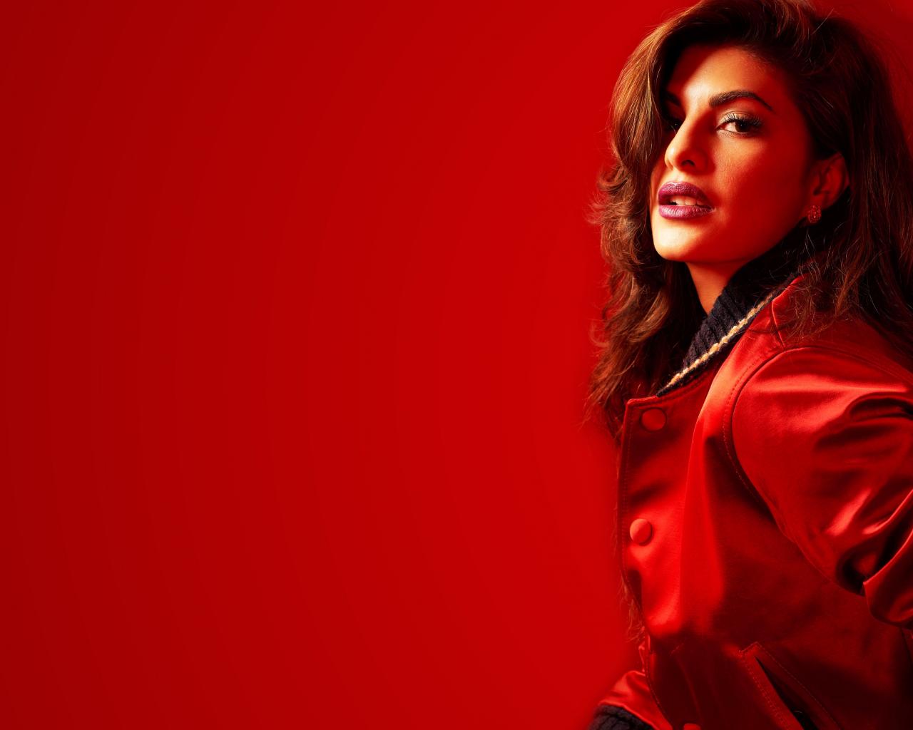 Wallpaper Actress Jacqueline Fernandez on a red background