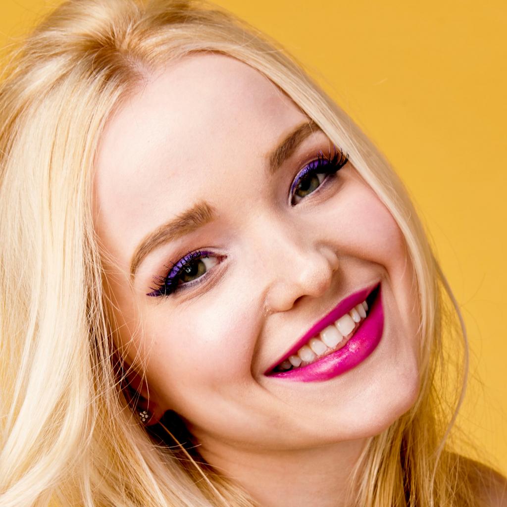Wallpaper Smiling girl actress Dove Caron on a yellow background close-up