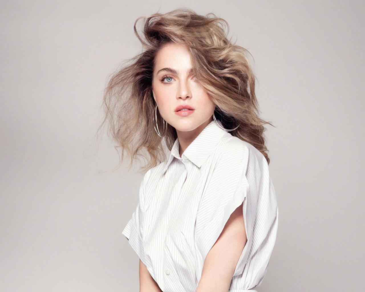Wallpaper Blue-eyed girl Ann Winters on a gray background