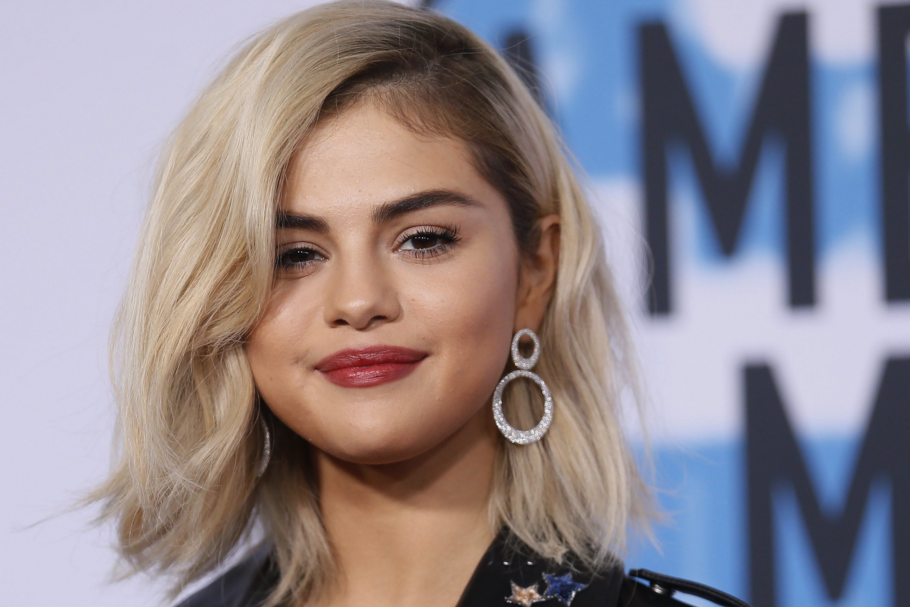 Wallpaper Beautiful blonde actress Selena Gomez with earrings in her ears