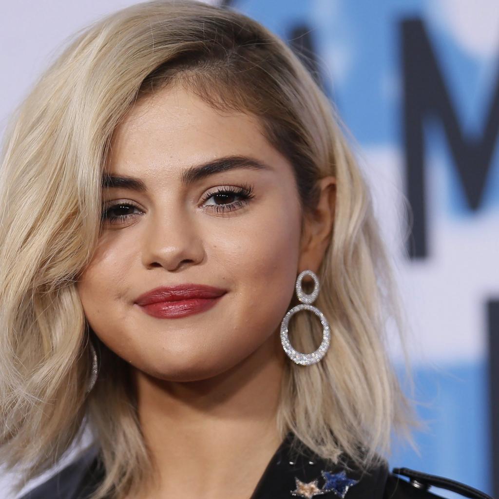 Wallpaper Beautiful blonde actress Selena Gomez with earrings in her ears