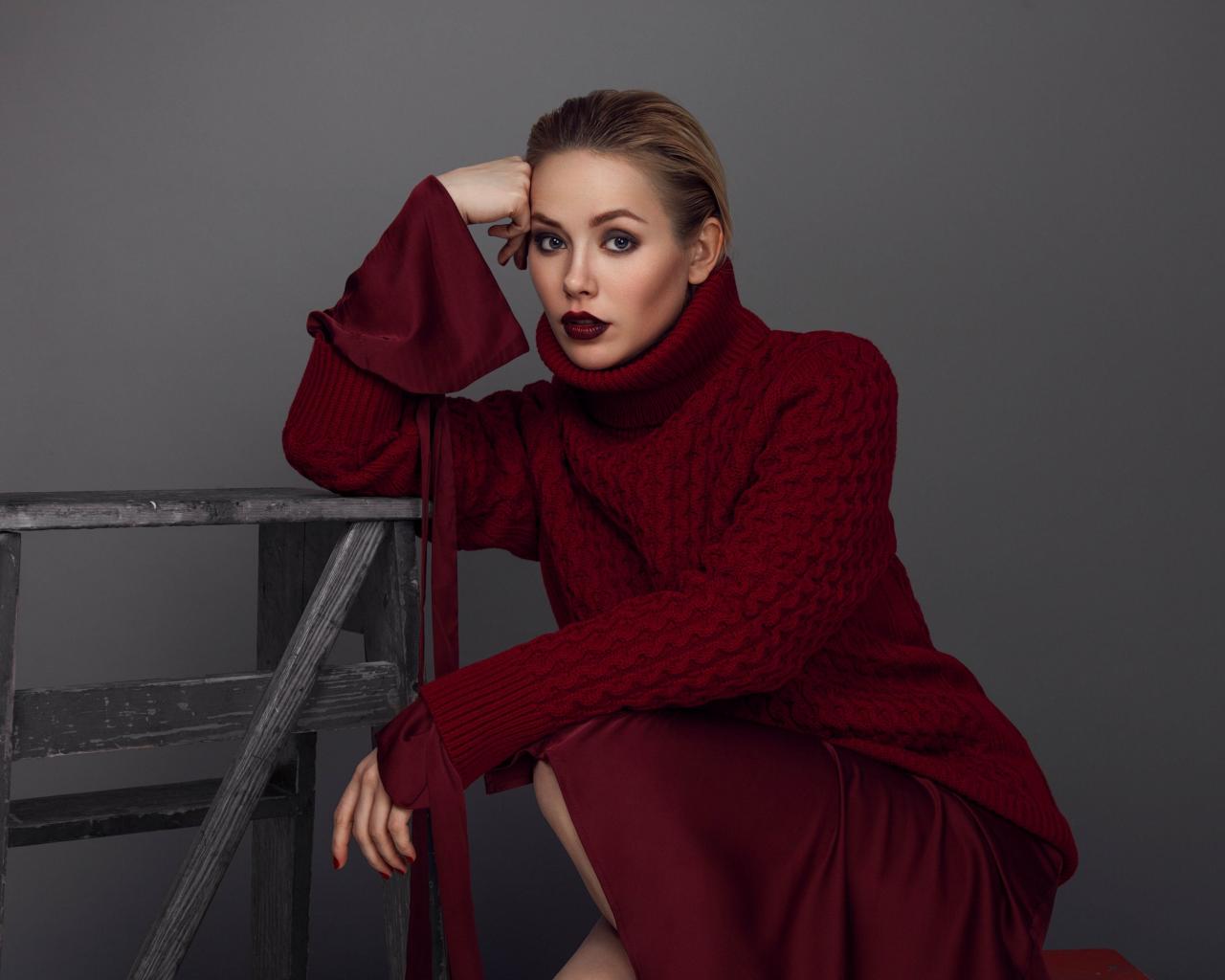 Wallpaper Russian actress Zoya Berber in a red sweater