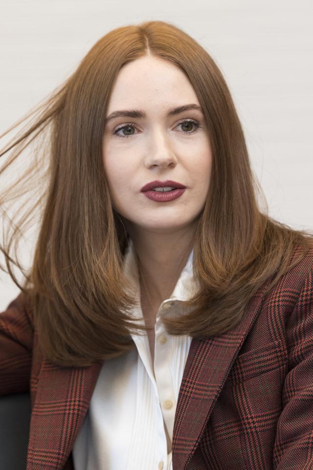 Wallpaper Actress Karen Gillan in a jacket holds hair