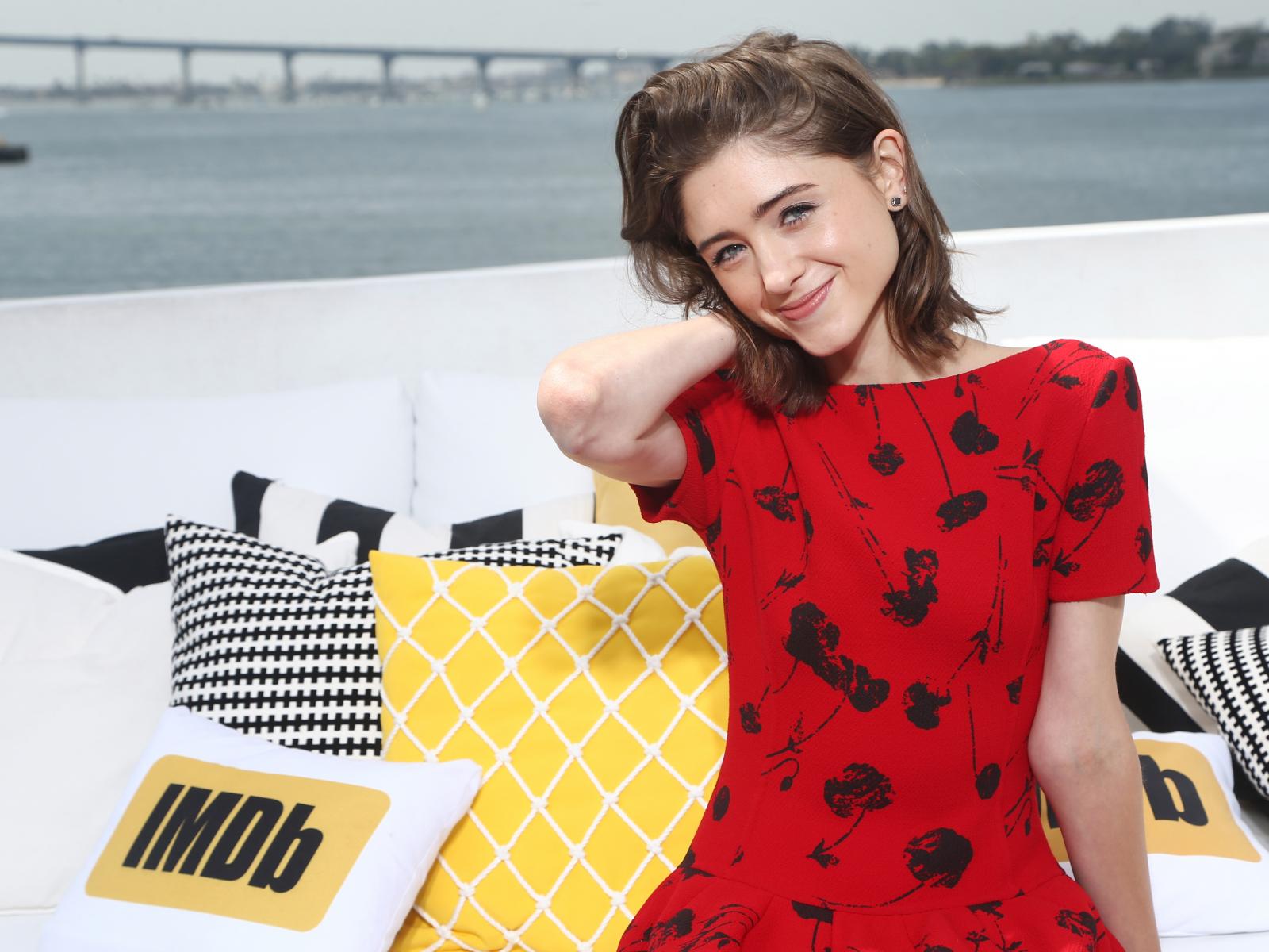 Wallpaper Lovely girl, actress Natalia Dyer in a red dress