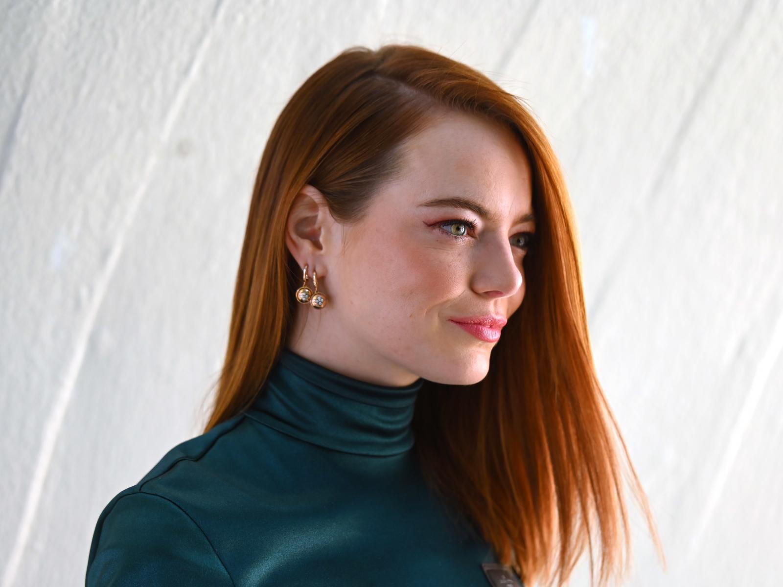 Wallpaper Red-haired actress Emma Stone side view