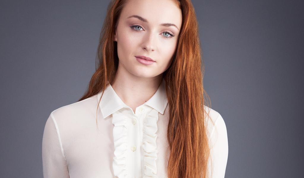 Wallpaper Red-haired blue-eyed actress Sophie Turner on a gray background