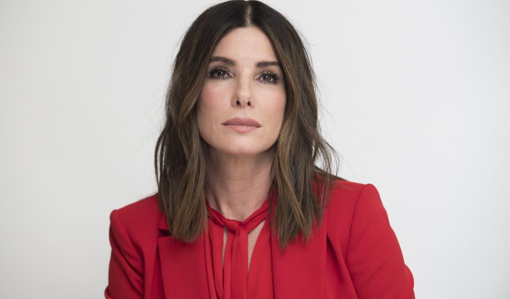 Wallpaper Popular actress Sandra Bullock in a red suit