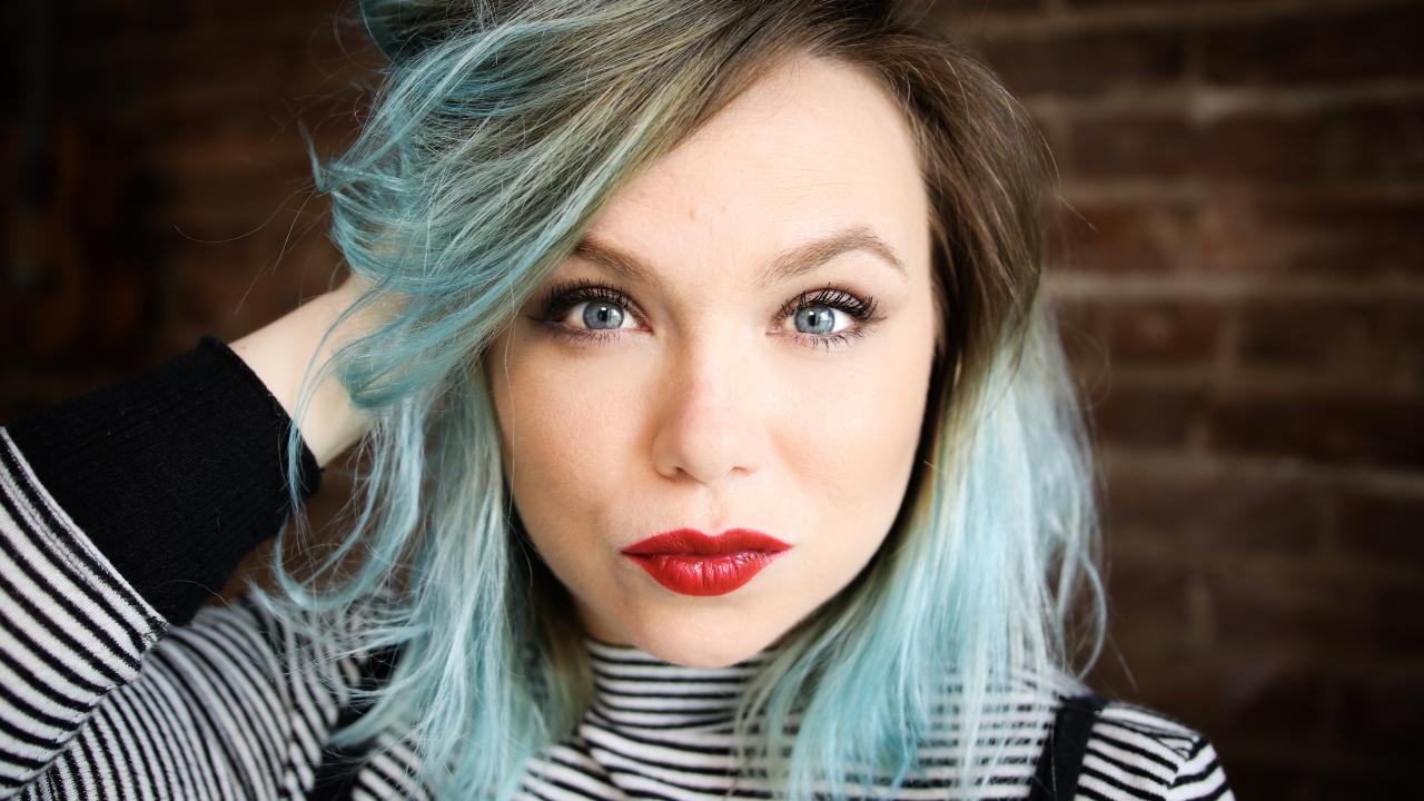 Wallpaper American actress Amanda Fuller with blue hair