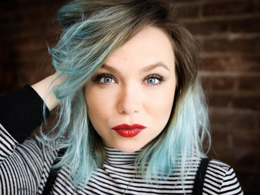 Wallpaper American actress Amanda Fuller with blue hair