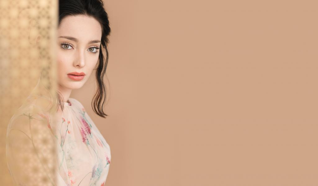 Wallpaper Beautiful woman, actress Emma Dumont behind the curtain