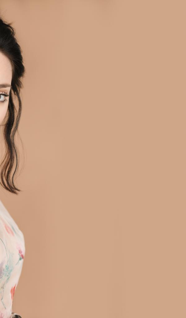 Wallpaper Beautiful woman, actress Emma Dumont behind the curtain