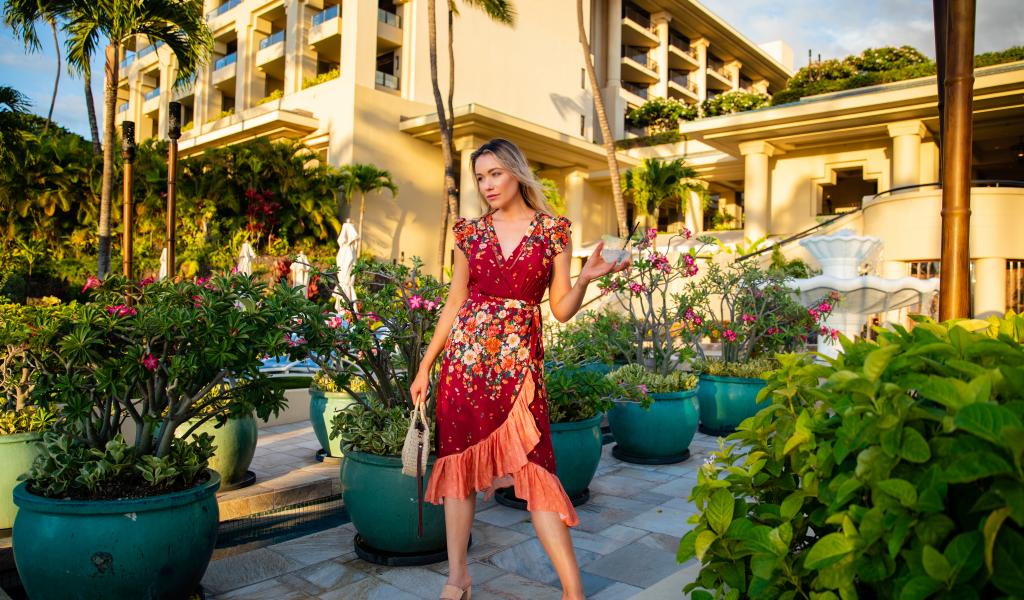 Wallpaper Actress Katrina Bowden in a dress on a background of the house