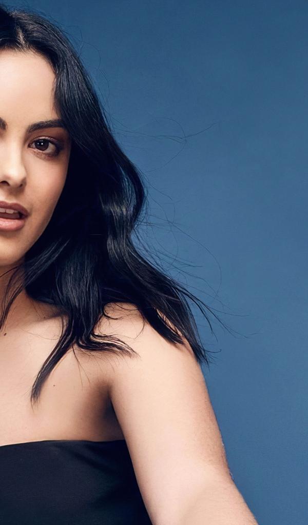 Wallpaper Beautiful actress Camila Mendes on a blue background