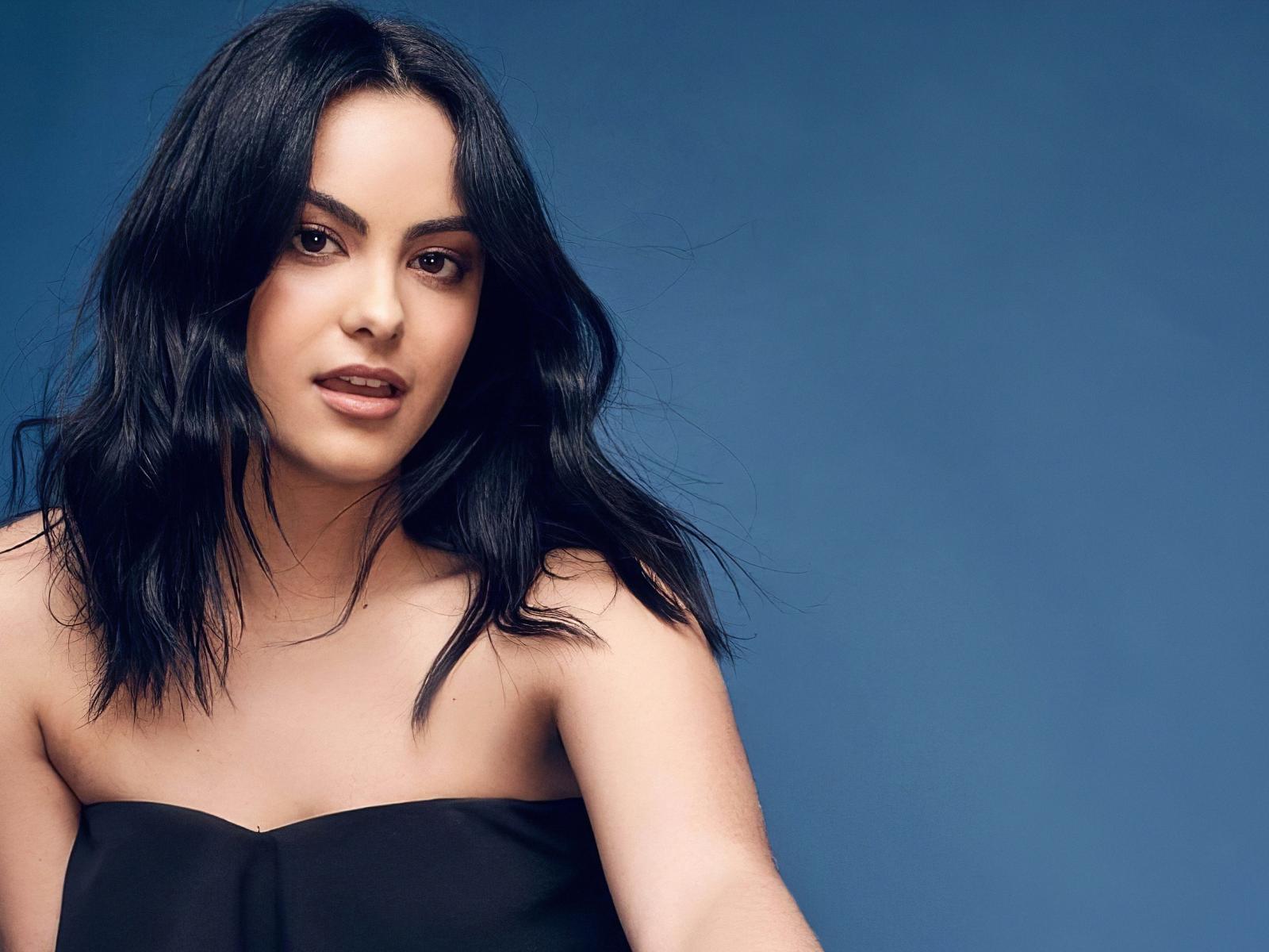 Wallpaper Beautiful actress Camila Mendes on a blue background