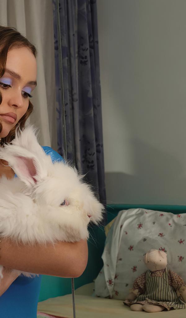 Wallpaper Young actress Lily-rose Melody Depp with a rabbit in her arms