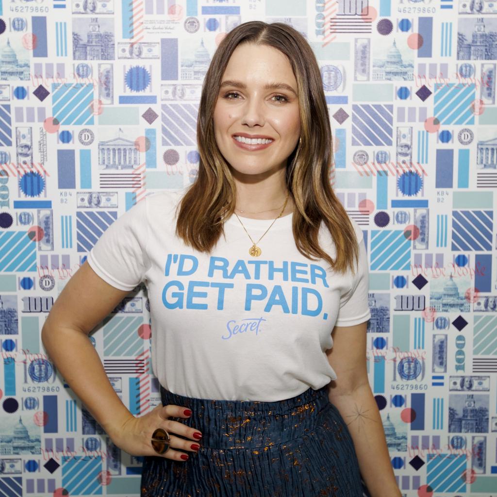 Wallpaper Smiling actress Sofia Bush by the wall