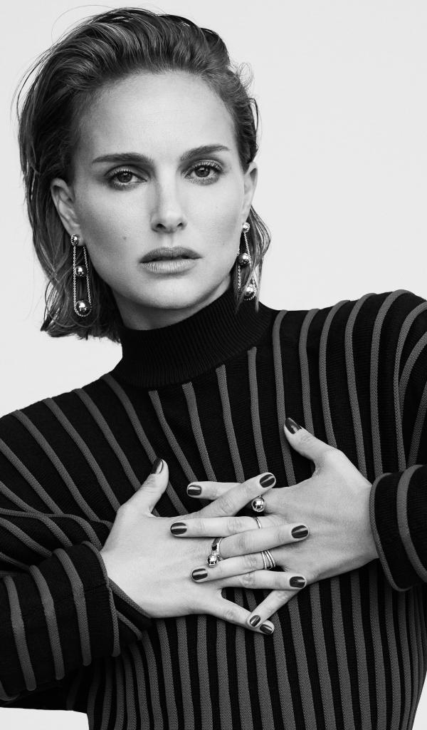» Wallpaper Actress Natalie Portman with jewelry black white photo