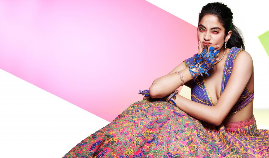 Wallpaper Indian actress Janvi Kapoor in bright outfit
