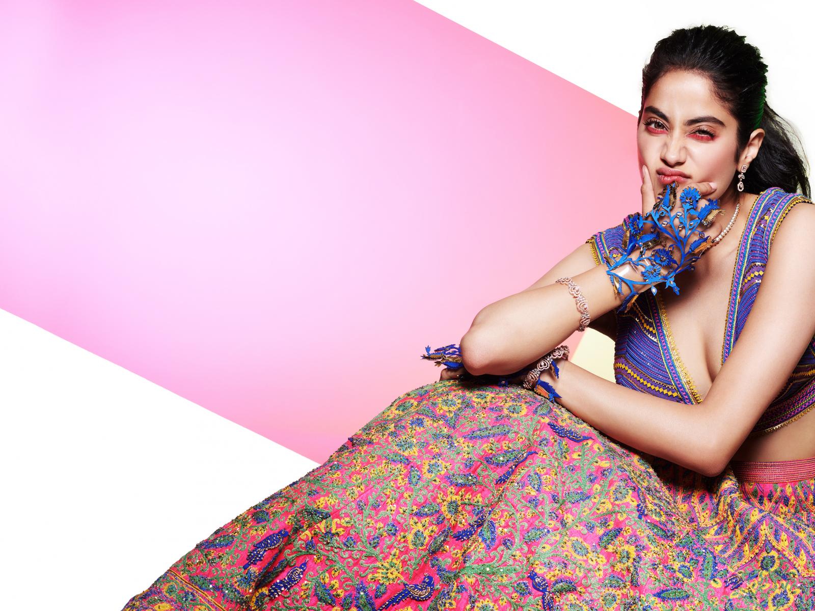 Wallpaper Indian actress Janvi Kapoor in bright outfit