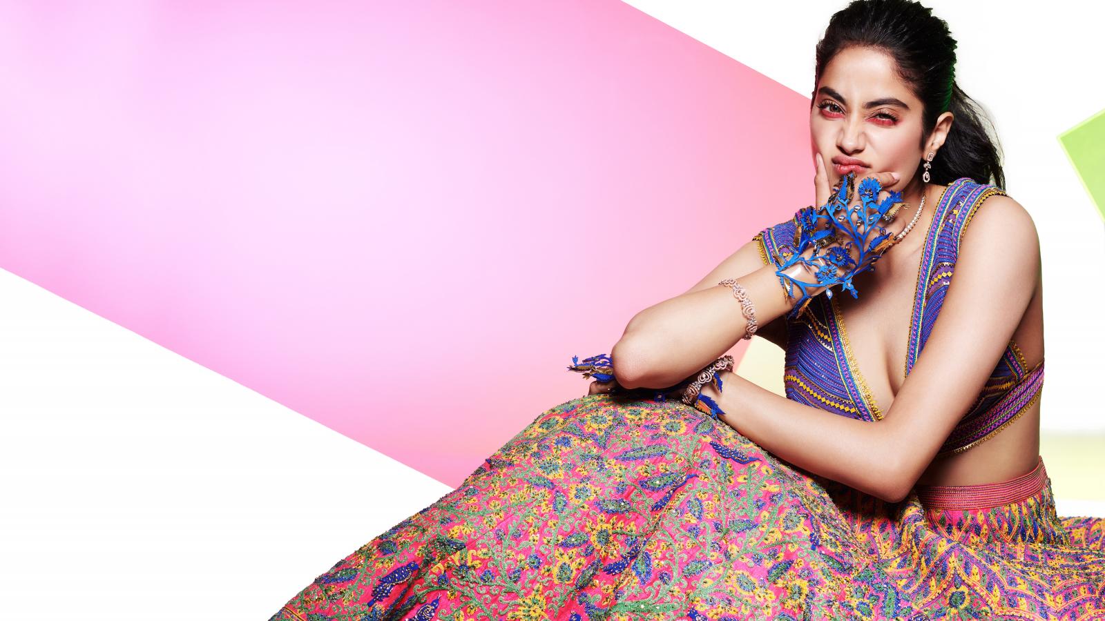 Wallpaper Indian actress Janvi Kapoor in bright outfit