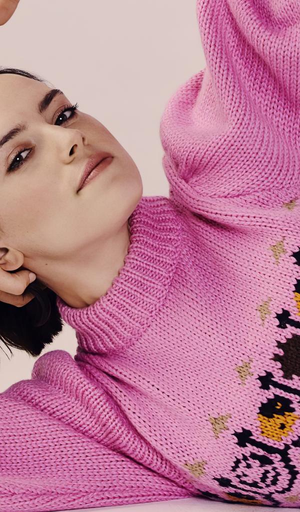 Wallpaper Actress Daisy Ridley in a pink sweater