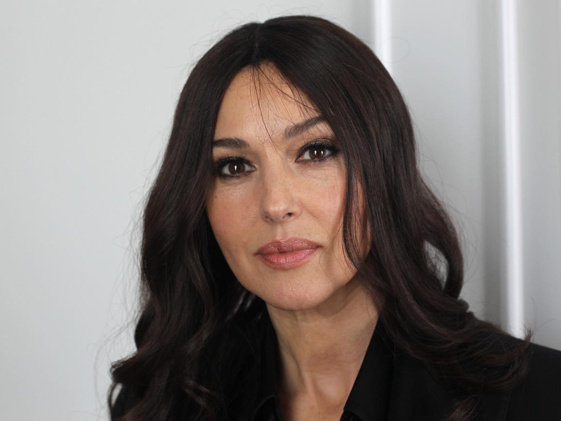 Wallpaper Stylish actress Monica Bellucci in a black suit