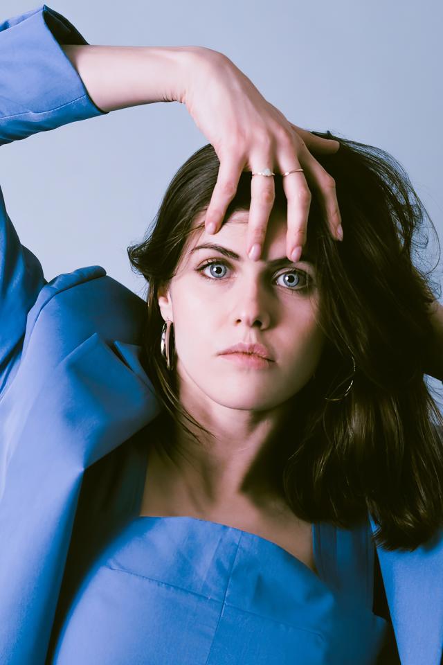 Wallpaper Actress Alexandra Daddario in a jacket on a gray background