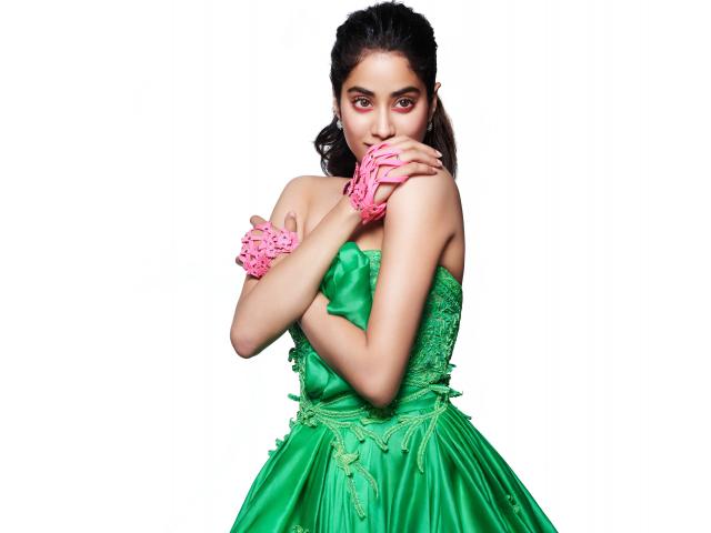Wallpaper Bollywood actress Janvi Kapoor in a green dress