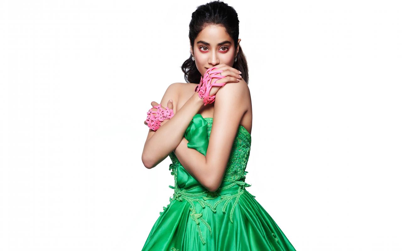 Wallpaper Bollywood actress Janvi Kapoor in a green dress