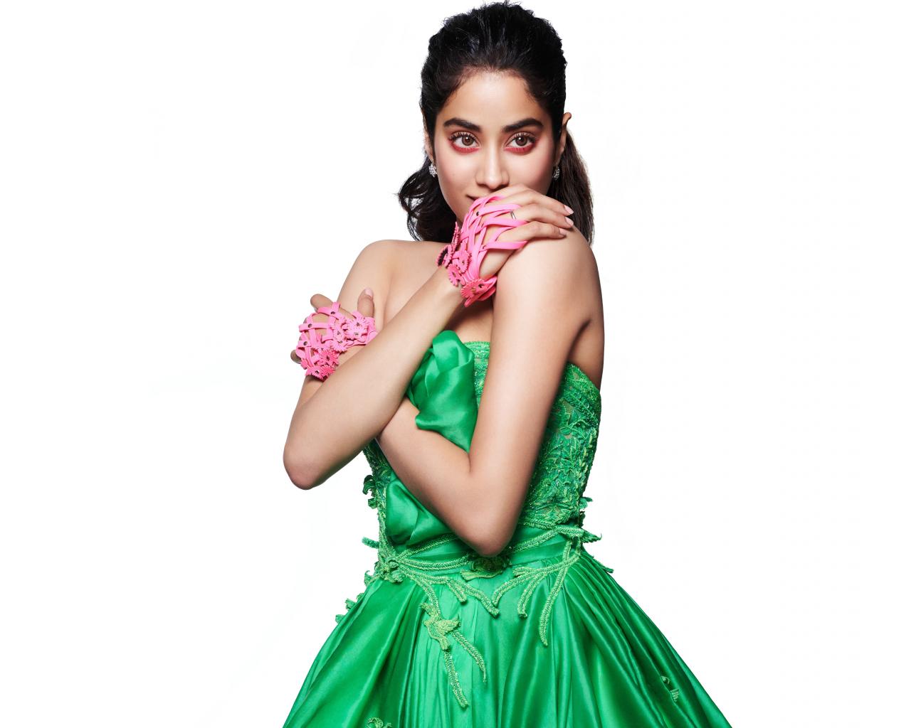 Wallpaper Bollywood actress Janvi Kapoor in a green dress