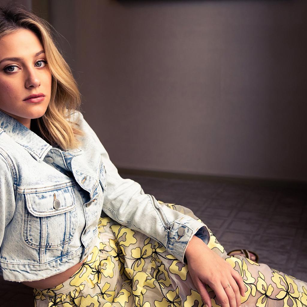 Wallpaper Beautiful blonde Lily Reinhart in a denim jacket