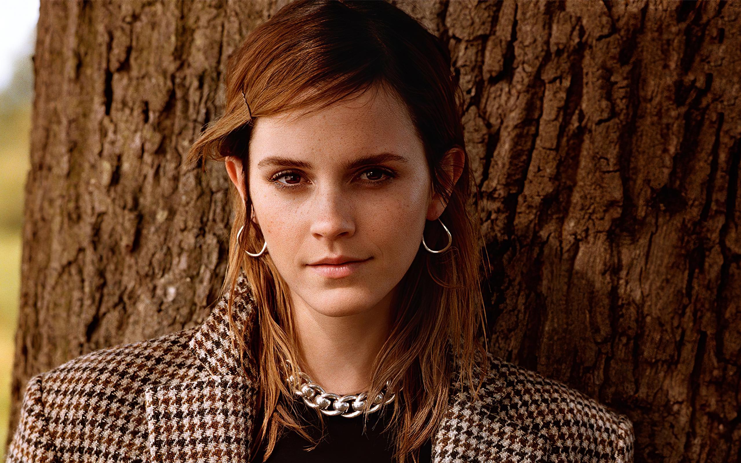 Wallpaper Young brown-eyed girl, actress Emma Watson by the tree