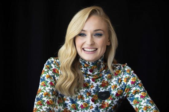Wallpaper Charming Sophie Turner smiles on a black background