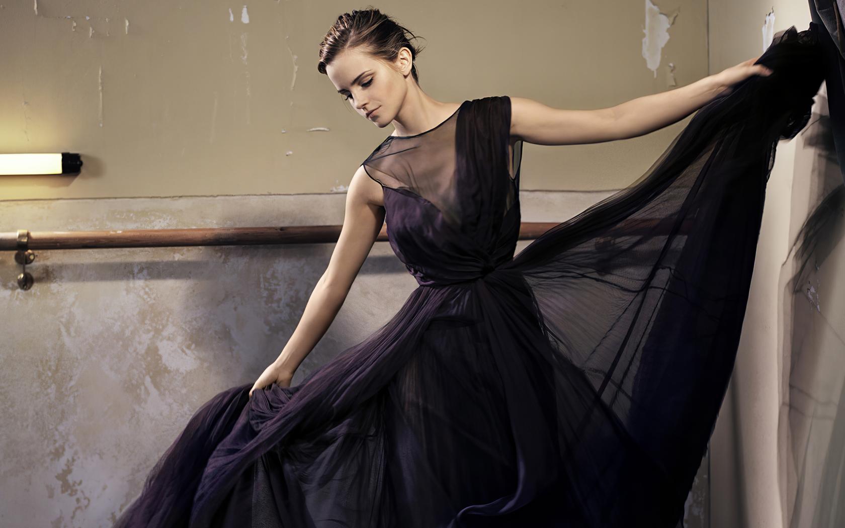 Wallpaper Actress Emma Watson in a beautiful black dress in the hall