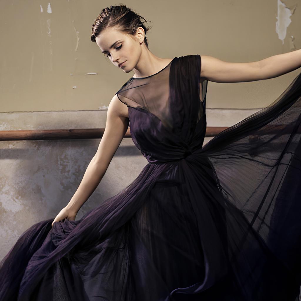 Wallpaper Actress Emma Watson in a beautiful black dress in the hall