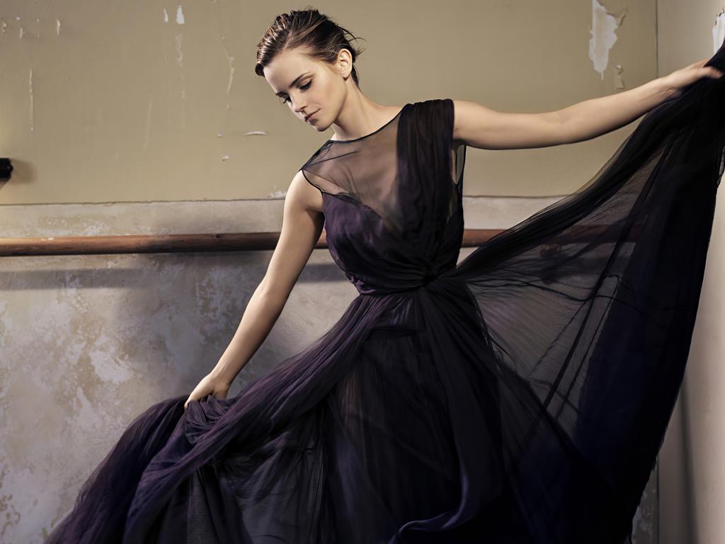 Wallpaper Actress Emma Watson in a beautiful black dress in the hall
