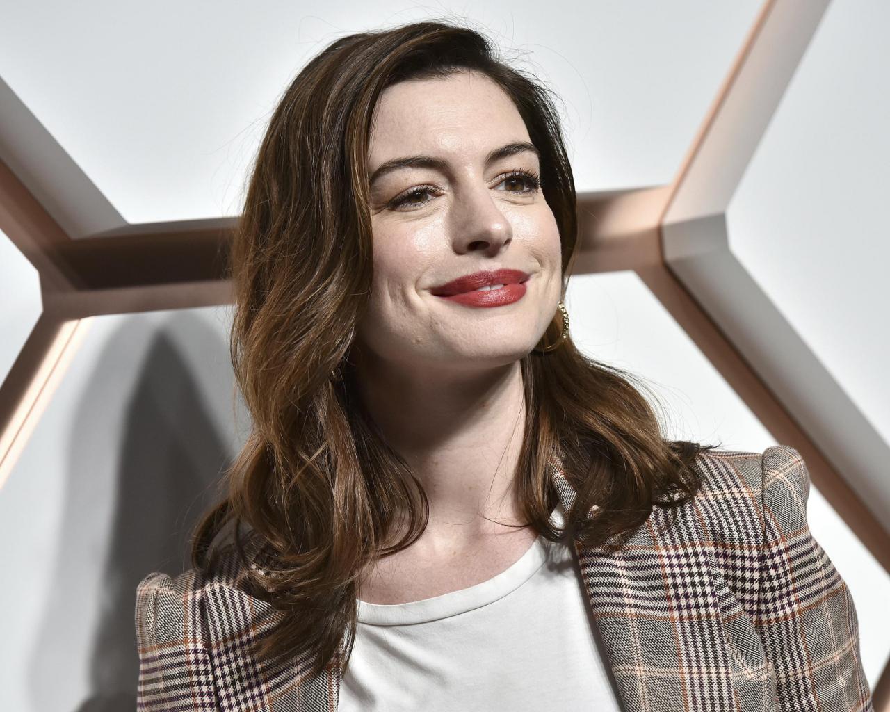 Wallpaper Smiling actress Anne Hathaway with a charming smile
