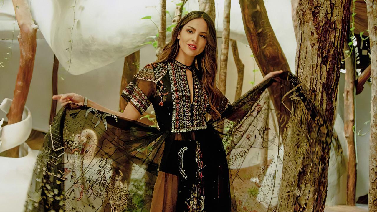 Wallpaper Actress Asa Gonzalez in a beautiful dress by the tree