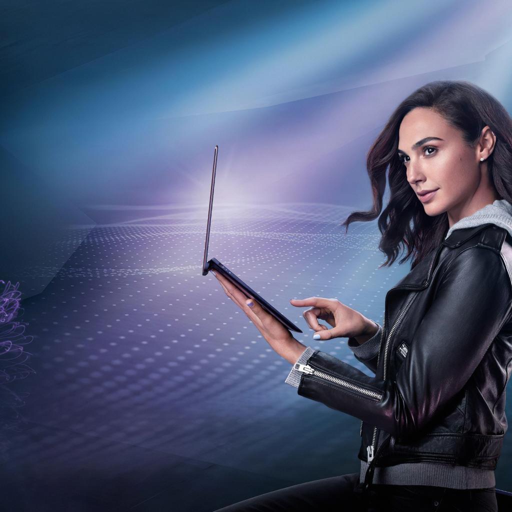 Wallpaper Actress Gal Gadot with a laptop in her hands