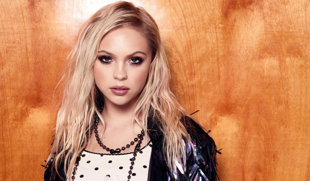 Wallpaper Actress Jordin Jones on a wooden wall background