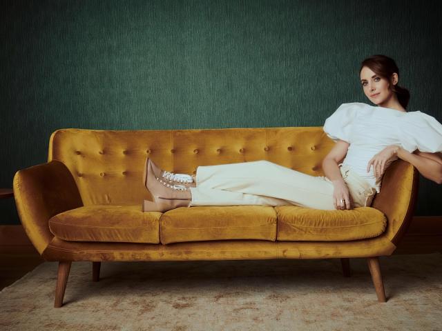 Wallpaper Actress Alison Bree is lying on the couch